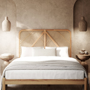 Crafted from natural rattan, this headboard offers a serene, Zen-inspired touch to your sleeping space.